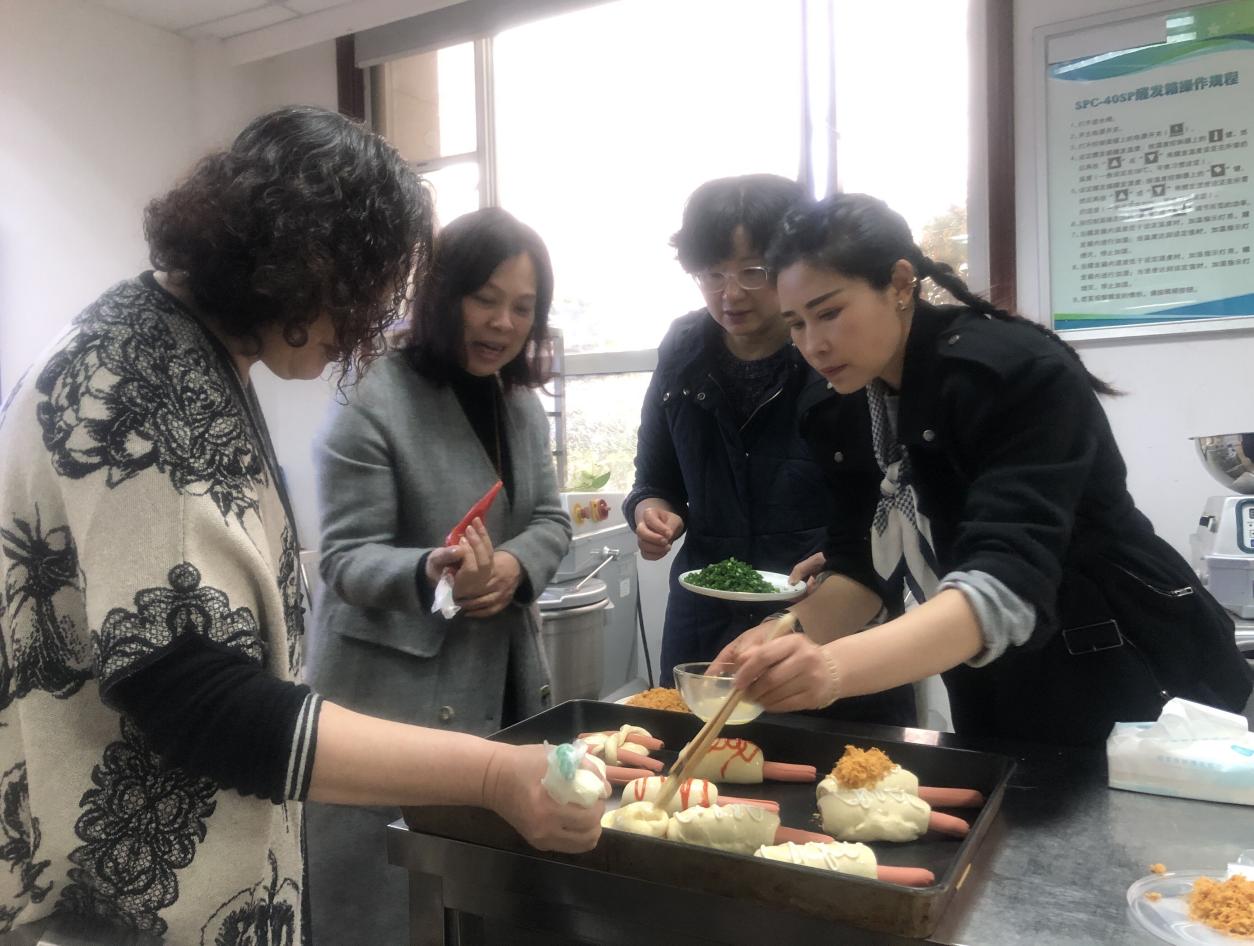 本次培训旨在带领各位领导通过“观、听、做、品”实际体验中西点制作,学习中西点制作的技艺,品味亲手制作的美食。考虑产品的专业性,结合季节的实用性,本次培训项目为绵软芳香的花式面包、柔软香甜的奶油蛋糕卷、艾叶清香的咸蛋黄肉松青团、唇齿留香的多味寿司。活动过程中,各位领导亲和、谦虚、勤学,展现了对中西点制作学习的浓厚兴趣;面点教学团队老师热情细致的讲解、熟练专业的实践演示,展现了公司专业教师出色的精神风貌和扎实的专业技艺。