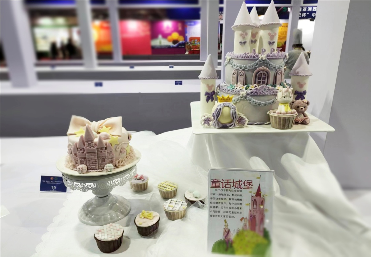 在w88win体育官网入口领导支持和西烹团队老师共同努力下,经过现场激烈角逐,2021级西式烹饪工艺专业吴云鹏、魏培益两位同学现场制作的翻糖创意蛋糕受到了评委老师的一致肯定,取得了一金一银的好成绩。