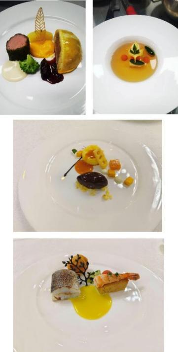 烹饪员工组赛项为团体赛,主要包括宴席策划书设计、规定菜制作、宴会菜点制作、展台呈现与答辩四个项目组成。四个项目均由团队成员合作完成,主要检验验参赛选手的现场设计与应变能力、营养搭配与计算能力、规范操作水平及创新创意能力和水平。烹饪教师组赛项为个人赛,需要在规定的时间内完成特定要求的开胃菜、汤、主菜以及甜品的制作,检验参赛老师在西式烹饪工艺专业的技艺水平、菜品创新、菜单设计、生产组织与管理的实践应用能力。
