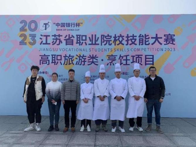 3月1日至3月5日,由江苏省教育厅、江苏省发改委等16个部门联合主办的2023年江苏省职业院校技能大赛高职旅游类餐厅服务项目和烹饪项目相继完成赛程,顺利落下帷幕。w88win体育官网入口共遴选8名师生参赛,经过现场激烈角逐,公司师生凭借扎实的基本功和过硬的心理素质斩获佳绩。其中,黄雨轩、陶长蜜两位同学获得2023年江苏省旅游类高职餐厅服务赛项三等奖;黄成、朱素敏、陈建、莫耀华四位同学在员工主题宴席设计与制作团体赛中荣获高职组三等奖;罗来庆老师在西式烹饪工艺专业个人赛中获得三等奖(排名第一)。