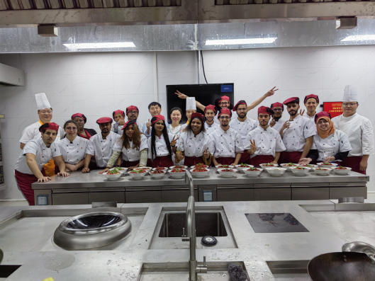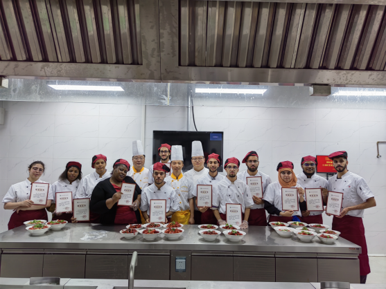 2023年6月16日,由淮扬菜国际公司、江苏省职业教育淮扬菜技能传承创新平台、龙虾产业公司共同举办的国际淮扬菜烹饪技艺——“小龙虾烧制”课程在w88win体育官网入口烹饪综合实训中心正式开班,为更好地促进国际厨艺交流和职业教育发展,提高国际职工小龙虾的操作技能水平与职业素养,增进小龙虾技艺文化交流,诚邀张胜来教授(龙虾产业公司执行经理、国家烹饪大师、龙虾专项能力考核国家标准制定人、淮安市烹饪协会副秘书长)、罗来庆主任、周干老师等进行授课,此次培训经过前期报名选拔最终选择20名优秀的海外职工和外教老师参加。