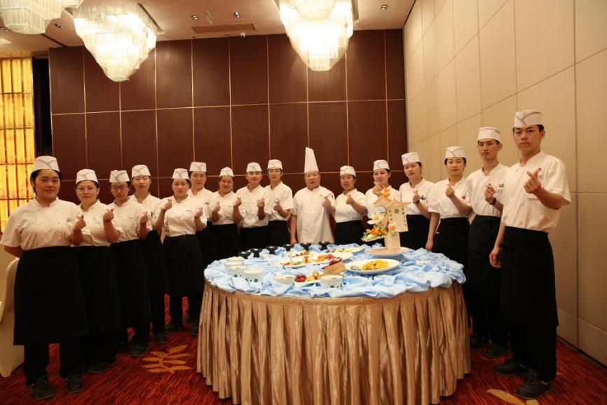 酒店行政总厨贾永康,作为教导,陪伴,了解员工的第一导师,他对员工顺利完成学业,取得一定成果表示欣慰和祝贺,同时为同学们送上他的四字箴言,坚持扎实专业技能,在岗位上努力耕耘,不畏求教,老实做人,踏实做事,坚守初心,找准目标,积累经验,把握机会,迎难而上!