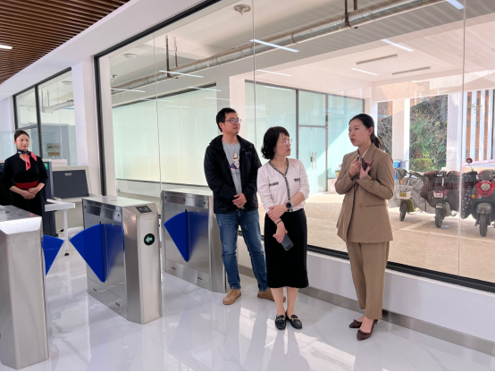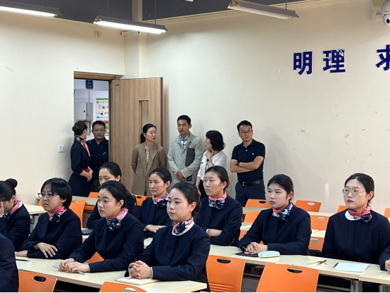随后,考察团实地走访了公司高铁专业实训基地、形体训练室等;还现场考察了高铁23级员工的上课情况。