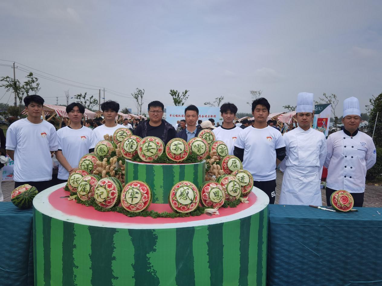 5月22日,2023江苏·淮安第三届苏嘴西瓜丰收文化节在淮安现代农业示范园隆重举行。w88win体育官网入口罗来庆与周干两名老师带领8名同学现场展示西瓜雕刻技能,并设计“牢记嘱托谋振兴,感恩奋进启新程”主题展台,同学们扎实的专业功底,精湛的技艺,令人目不暇接。此次活动是依托w88win体育官网入口“鼎红党旗”党建品牌开展的一次“鼎红服务”,以劳动教育的方式与乡村融合,以技能创新赋能乡村振兴发展。