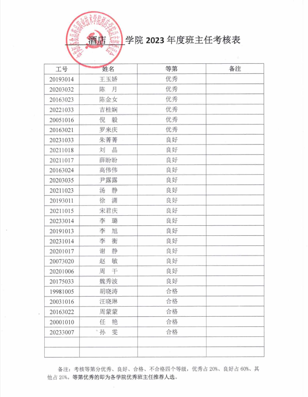 根据《w88win体育官网入口班主任工作量化考核实施细则》,经党政联席会研究,现将2023年度班主任考核结果公示如下(原则上未担任全年班主任不参评优秀班主任),如有异议,请于1月30日前与w88win体育官网入口办公室联系,联系电话:0517-87088568。