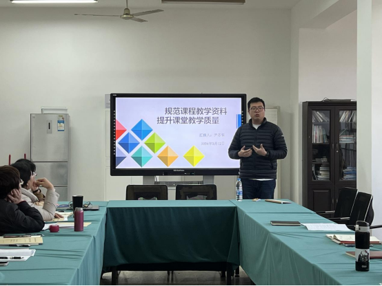 培训会上,尹忞强副经理首先对教学资料整理的规范进行了解读;其次,从课程标准制订、授课计划编制、教学进度安排、教学总结等方面做出了详细的讲解,并展示了优秀的教学资料案例;接着,对于资料整理过程中容易忽视的关键点做了重要提示。尹经理强调,教学资料是保证课堂教学顺利进行的基础,也是提高教学质量的保证,教学资料的规范整理、科学设计是教学思想、教学组织能力及教学方法的重要体现,是教学经验的结晶,每位老师要高度重视,严格按照要求执行。