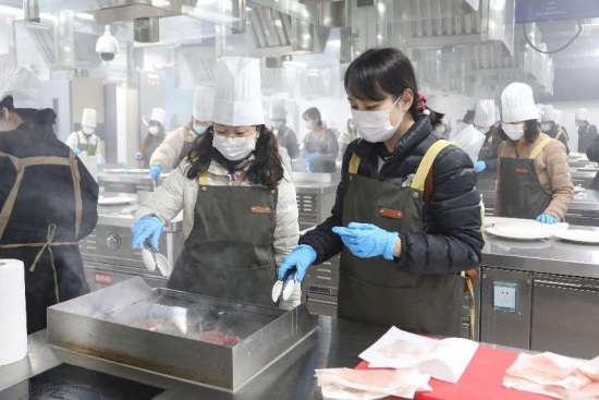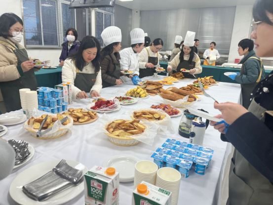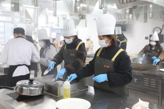 花艺制作活动之后就是牛排制作与品尝活动,由公司西式烹饪工艺专业团队承办。在w88win体育官网入口的西餐实训室里,西餐专业的老师们耐心讲解、现场演示牛排制作的流程工艺,女士们纷纷穿戴起烹饪服帽,挽起衣袖,亲身体验牛排制作的过程。在专业教师和员工志愿者们的细心指导下,大家从牛排的煎制,到配菜的搭配,再到少司酱料的熬制,每一个环节都投入了百分百的热情与专注。制作现场弥漫着牛排和迷迭香的香气,气氛热烈而欢快。