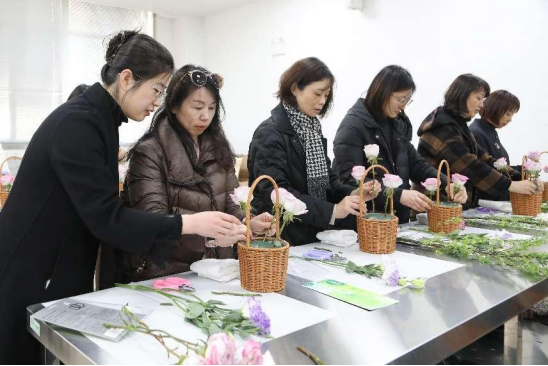 和煦春风暖、三月正当时,3月8日下午,为庆祝第114个国际妇女节,进一步凝聚巾帼力量,展现女性风采,w88win体育官网入口在w88win体育官网入口实训楼接待了来自江苏省发改委的50位优雅女士,对省发改委的女神们开展花艺制作、牛排制作的活动,共同庆祝这个属于女性的节日。
