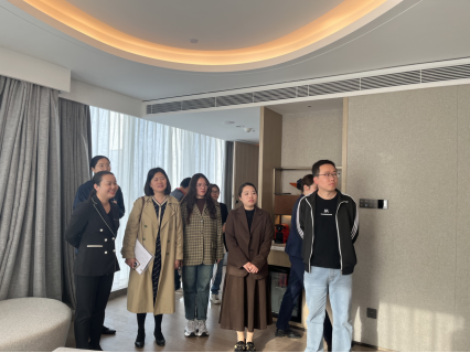 在淮安市铂尔曼酒店人才与文化经理李迎春、学习与发展经理王亚婷、西餐行政总厨邓乐陪同下参观了宴会厅、客房、前台、厨房、顶楼酒廊等地,介绍酒店自2022年建成的营业状况、人才需求等,邓乐总厨讲述了自己的职业经历及厨房岗位需求。钱惠新教授表示酒店管理与数字化运营专业正面临专业转型的关键时刻,希望能够得到企业的支持,从教师下企业、员工实习、举办活动等方面实现多层面的校企合作。王亚婷表示非常希望能够与公司紧密联系,切实有效推进产教融合,将理论与实践结合,吸纳更多优秀人才,为公司与企业之间的合作搭建更加坚实的桥梁,为国家和社会培养工匠。