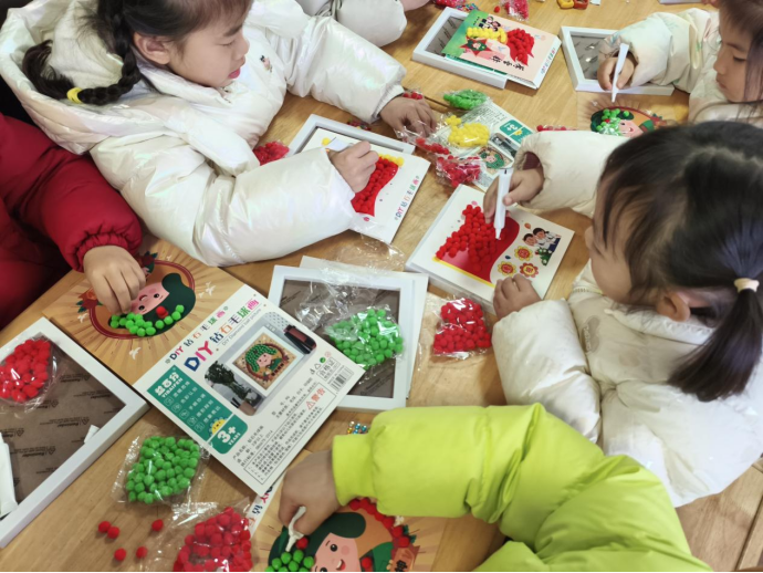 活动伊始,讲解员韩炎均用亲切的语言为孩子们讲述雷锋叔叔的感人故事,引导孩子们树立乐于助人、无私奉献的意识。随后,进入了问答互动环节。主持人提出了一系列与雷锋精神相关的问题,孩子们热情洋溢,争相举手发言。志愿者们还特意为他们准备了小红旗作为回答正确的奖励,不仅激发了孩子们的学习热情,还让他们在轻松愉快的氛围中加深了对雷锋精神的理解。紧接着,进入毛球画创作”环节。孩子们拿起画笔 和彩色毛球,凭借刚刚故事中对雷锋事迹的鲜活记忆,充分发挥自己的想象力与创造力,在画纸上描绘者心目中的雷锋形象。不仅锻炼了孩子们的动手能力,更让他们在创作实践中体会到助人为乐的意义。
