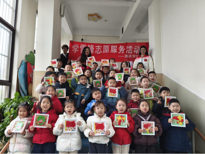 最后,志愿者们为孩子们送上由中西面点专业同学们亲手制作的小红花、五角心饼干。这些饼干不仅外形精美,而且寓意深刻,象征着孩子们在学雷锋活动中的优秀表现和美好品质。