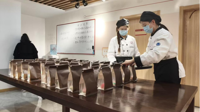 紧接着,一场别开生面的养生知识讲座吸引了老人们的注意。讲解员依托专业知识深入浅出地介绍了老年人日常生活中的养生技巧和健康知识。语言内容通俗易懂,结合老年人的身体特点,让老人们受益匪浅。为了让老人们更好地管理自己的饮食健康,中西面点专业的员工还通过营养配餐专业课程所学知识为老人们精心准备了定制食谱,并逐一为老人们详细讲解。针对每位老人的身体状况和口味偏好,讲解员给出了个性化的饮食建议,让老人们感受到了贴心的关怀。
