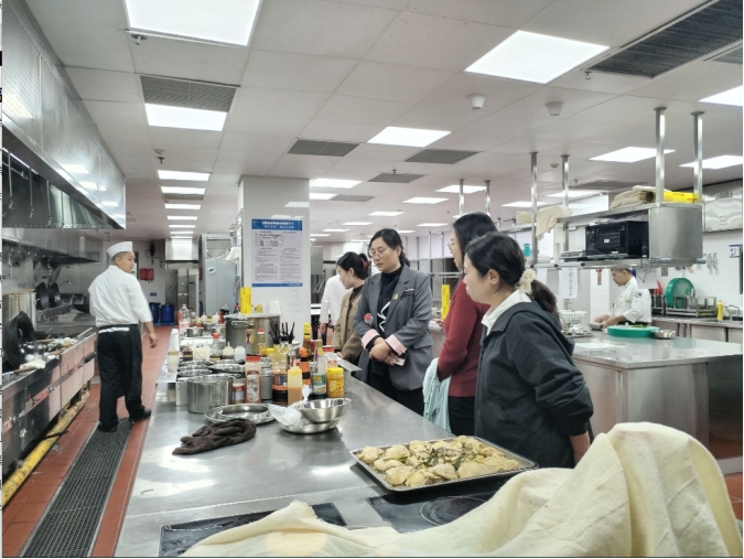 随后,在酒店人力资源部张倩经理的引导下,老师们先后参观了酒店大堂、行政酒廊、餐饮部、宴会厅、客房及后厨等核心区域,实地了解“一站式服务”“定制化体验”等特色场景的运作逻辑。