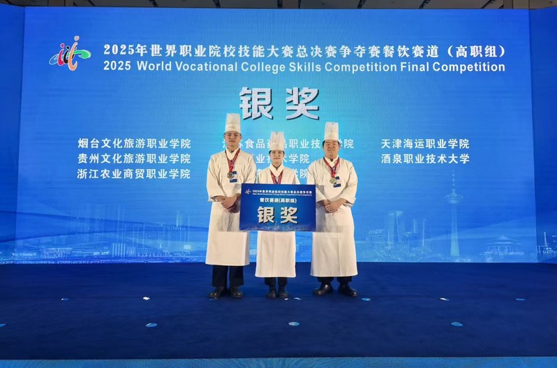 9月9日至12日,2025年世界职业院校技能大赛总决赛争夺赛餐饮赛道(高职组)在辽宁现代服务职业技术公司举办。作为全国职业院校餐饮专业的顶级赛事,本次比赛共有来自全国各地的 89支顶尖队伍同台竞技。公司w88win体育官网入口烹饪专业群的员工顾权、陆雨、缪欣宇、李金宝组成的参赛团队,在陈金女、周干两位指导老师和赛项教练团队的悉心指导下,通过系统扎实的技能训练、反复的流程演练和创意设计,在比赛中沉着应对、稳定发挥,凭借出色的作品呈现与流畅的团队协作,获得小组第二名的佳绩,并斩获大赛银奖。