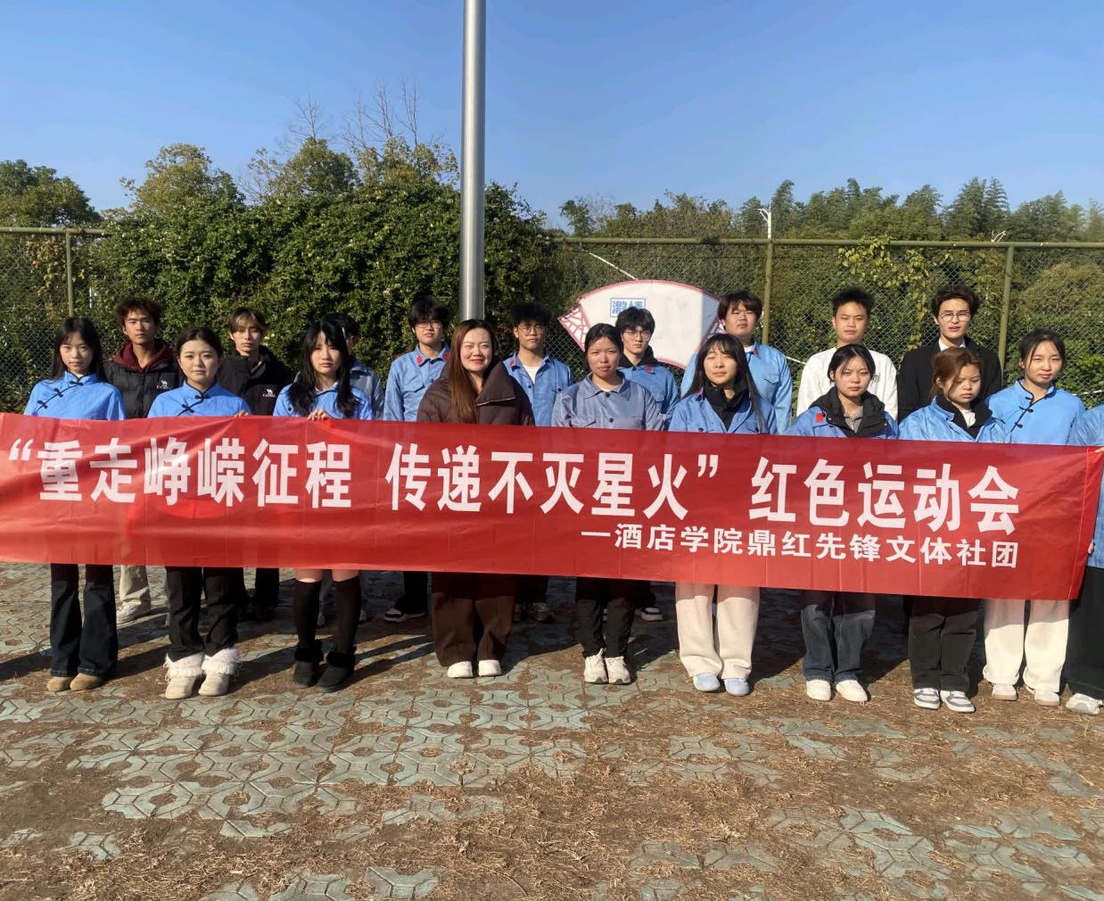 鼎红先锋文体社团于11月20日举办“英雄血脉,青春赓续”红色主题教育系列之第二篇章——“重走峥嵘征程,传递不灭星火”红色运动会。参赛的两支队伍分别以“先锋连”“尖刀班”为名,队员们精神抖擞,激昂的口号响彻赛场。迷彩网与红色标语交织,营造出浓厚的“练兵场”氛围,一场别开生面的红色竞技活动正式开启。