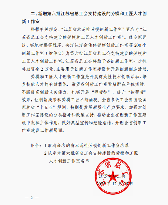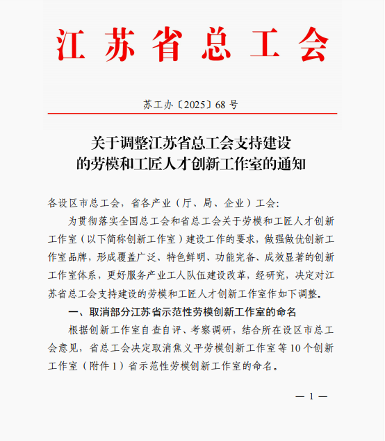 近日,江苏省总工会印发《关于调整江苏省总工会支持建设的劳模和工匠人才创新工作室的通知》(苏工办〔2025〕68号),正式认定第六批省总工会支持建设的劳模和工匠人才创新工作室名单,公司w88win体育官网入口张胜来工匠淮扬菜传承与创新工作室获评江苏省劳模和工匠人才创新工作室。